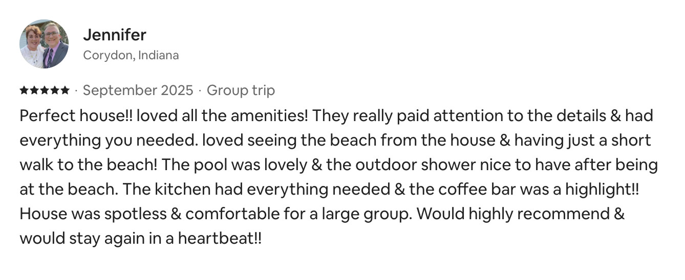 Dragonfly is located 50 steps form the beach in West Beach which is just 2 miles from The Hangout. It is close enough to access everything, bur far enough away to separate from the tourist attractions.