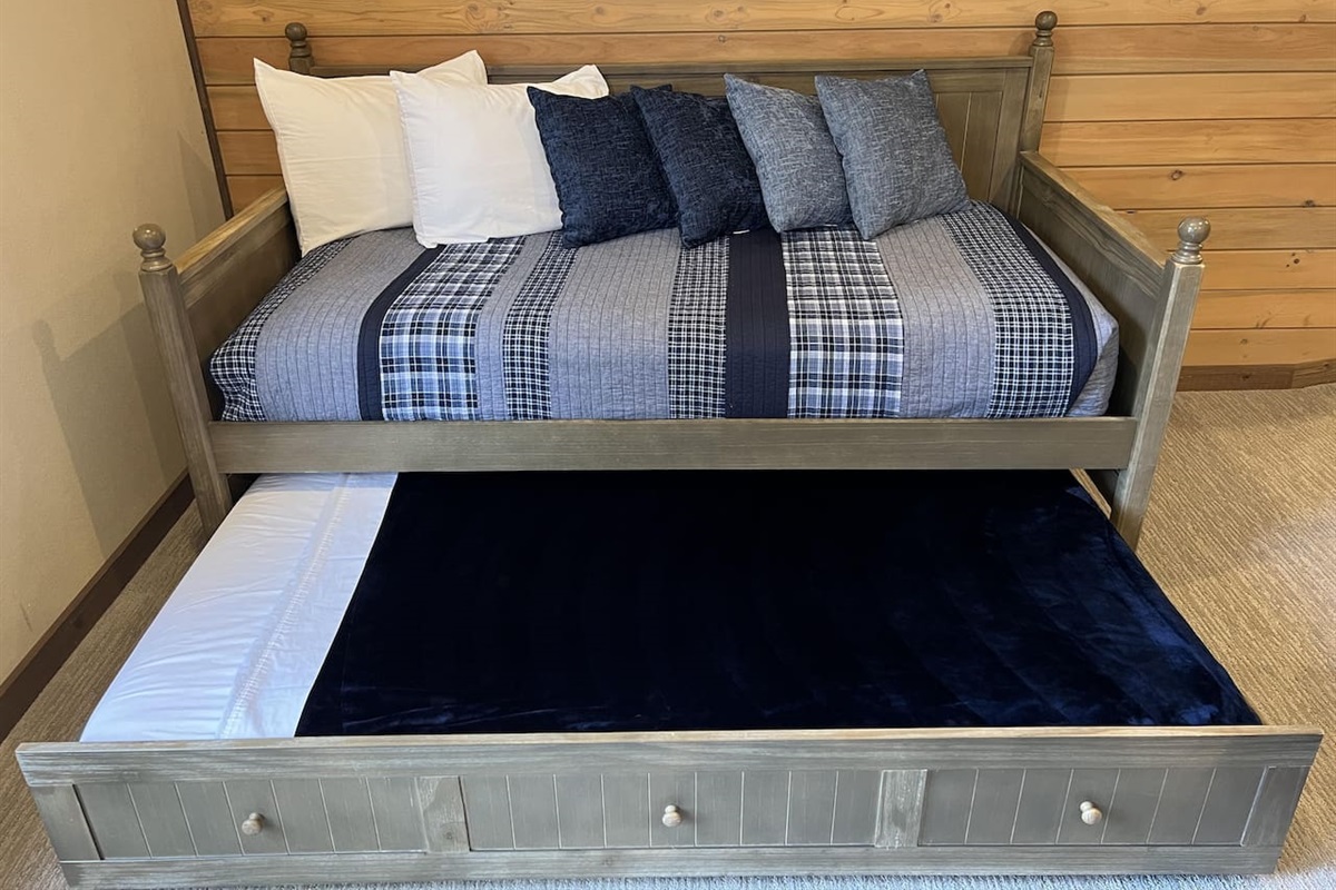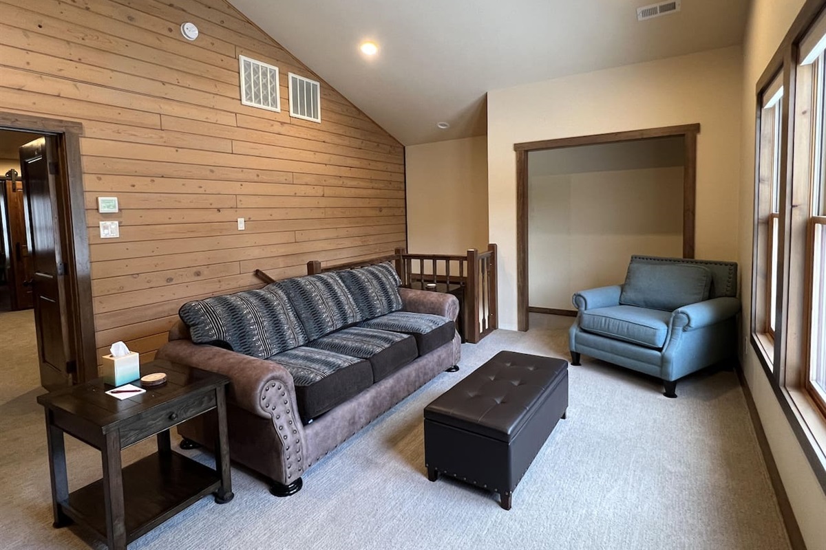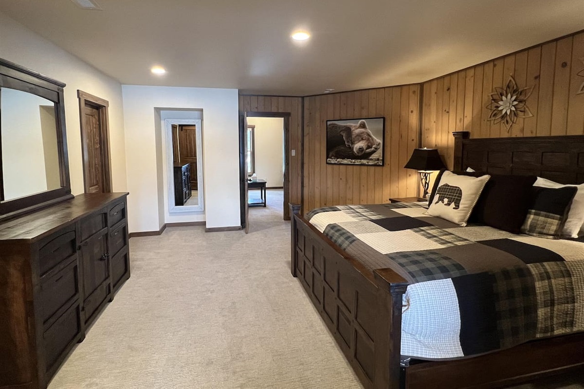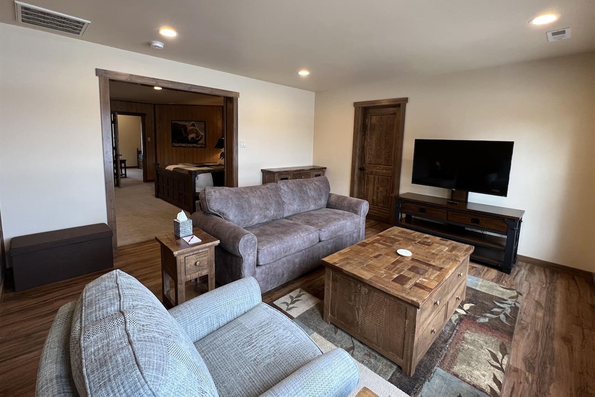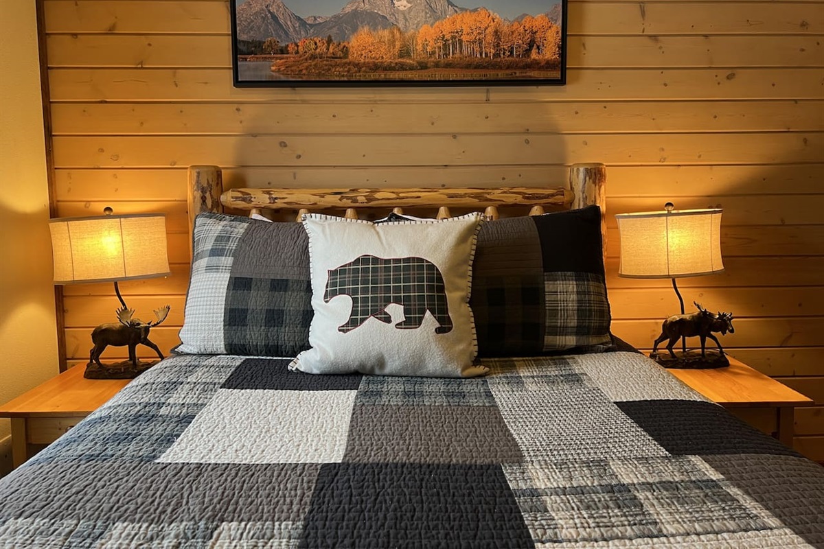 5 Bedrooms • 3 Bathrooms 3 Baths • Sleeps 11-18Our Flower Moon Lodge is a 5 bedroom, 3 bathroom house, equipped with brand new washer/dryer and appliances. This unit has been completely remodeled, so everything is brand new! Exquisitely designed, the house has 4 bedrooms with queen sized beds, and a master suite with a king sized bed. There are also 4 queen sized sleeper sofas and a day bed throughout the house allowing it to accommodate up to 18 people. With a huge kitchen, full sized refrigerator, oven/stove, dishwasher, and microwave, you are able to cook full meals if you would rather not go out. The unit overlooks a large pond and pasture area and has a large deck that wraps around half the house if you would like to sit outside and enjoy the atmosphere. The deck is also great for BBQing. The property itself is 15 acres with 2 ponds, lots of lawn space, trees, wooded areas, and pasture. There are multiple housing options on the property ranging from 5 bedroom cabins to a 1 bedroom handicap accessible apartment if you would like to rent several units together. Please don't hesitate to reach out with questions!