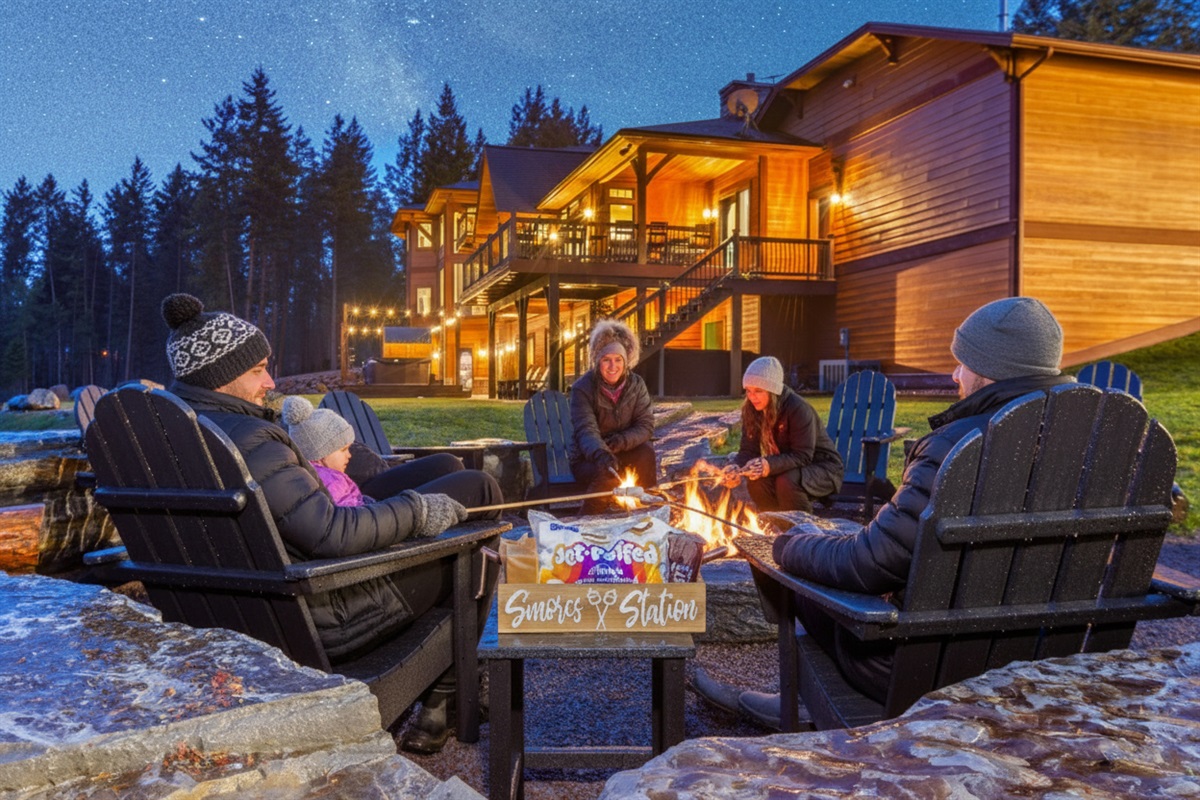 Let the kids take over the game room, the grandparents unwind in the sauna, and the rest of the group gather around the smoker, the kitchen island, or the firepit as the sun sets behind the peaks.